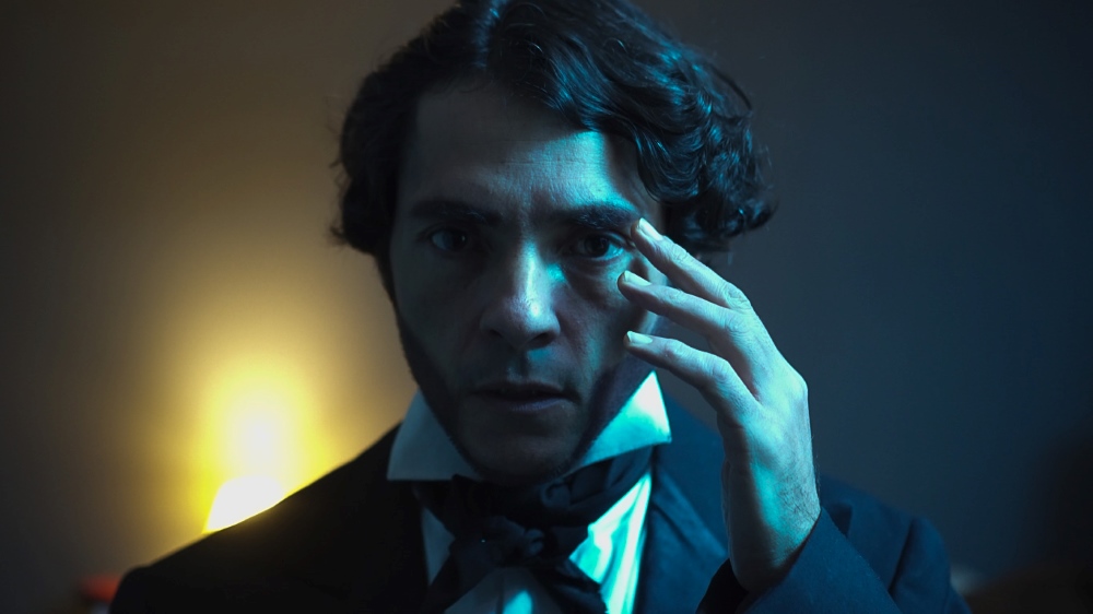 A través de una estructura no lineal y una estética que roza lo teatral —con esos fondos negros que concentran la atención en lo esencial—, la película nos lleva de paseo por los barcos del exilio y las amistades de Alberdi con figuras como Esteban Echeverría. Pero lo más fascinante ocurre frente al espejo: un salto surrealista que conecta al prócer con el Tucumán del siglo XXI.