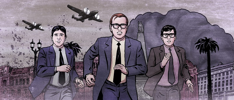 NM: Está inspirado en el cómic de fines de los ´50. Para eso pensé mucho en “El Eternauta” al momento de la realización y el recurso, fui a buscar esa estética. Gran mérito del ilustrador -Pol Maiztegui- , último discípulo de Solano López, que se animó al desafío y funcionó muy bien para recrear el momento del robo.