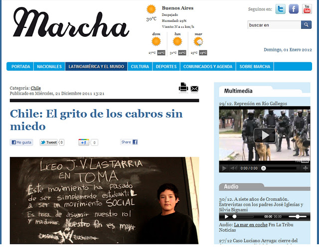 Por ejemplo, toda la cobertura sobre consumo de sustancias que ha hecho Marcha, sobre la democratización de la comunicación, qué implica pensar eso, esto de salirse del juego de medios oficialistas-medios opositores, la perspectiva de género con una gran cantidad de notas, una cobertura interesante que va desde la denuncia hasta el análisis, al testimonio, a la entrevista o a la crónica, que también empezamos a ver que, en Marcha tenemos esa perspectiva de trabajo. Digamos, obviamente es definir y pensar editorialmente, queremos que tenga un eco y una respuesta en nuestros lectores y que muchas veces son las notas más leías de la semana. Entonces, creo que Marcha está en un camino acertado, que es el camino de un proyecto comunicacional transformador, una apuesta al periodismo popular, trabajar, romper las formas organizativas de los medios tradicionales y pensar en formas nuevas. En ese sentido también pensar una transformación y como herramienta político-comunicacional hacer una apuesta al cambio social. Puede estar más ligada a las organizaciones, a los compañeros que participan pero no se reduce a eso, sino que es una apuesta más en un campo de batalla que es el campo comunicacional. Y creo, además, que es un camino acertado porque la realidad nos lo dice también, o sea cuando uno sale a la calle y que la tipificación de los medios sobre los manifestantes está determinada por los grupos políticos o por los grupos de interés económico y que el relato empieza a ser uno solo que se repite en todos los medios, que responde a la lógica de los multimedios, casi como que hay una responsabilidad, hay un deber ahí como salir a decir: esto no es así. Y evidentemente no podemos seguir pensando que los medios son los que nos van a dar la voz, la voz la tenemos que constituir nosotros pero la tenemos que constituir con la misma responsabilidad y con la misma seriedad con la que se hace periodismo, con la que cualquier medio hace periodismo y salir a disputarle como iguales. Donde encontremos fisuras, buenísimo, aprovecharlas porque esas fisuras nos van a permitir a nosotros una posibilidad, y probablemente forzar a un medio hegemónico o a un medio masivo a que cambie su relato, a que tenga que dar una vuelta de tuerca porque no le queda otra, porque la opinión pública ya se lo está demandando.