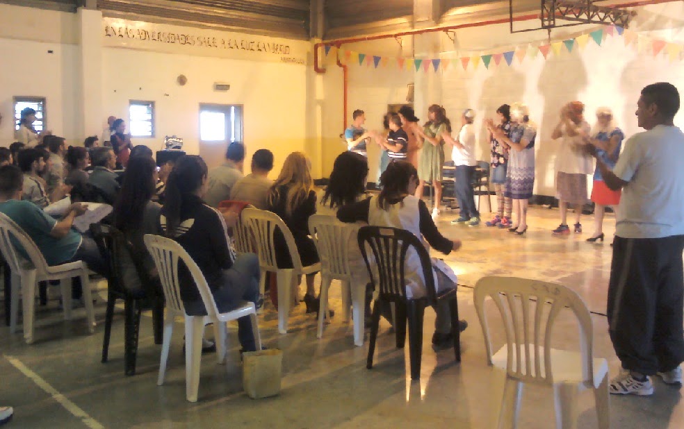 Con la Unidad 2, con “Negros tenían que ser” vengo trabajando hace más de un año y ésta es la tercera obra que hago. El grupo que ustedes vieron hoy, los que actuaron, son una parte, pero hay muchos más, lo que pasa es que algunos no querían hacer de mujer, por eso incluso algunos salieron con máscaras, otros ayudaron, asistieron, pero bueno, era lógico que les pasara eso porque era fuerte actuar de mujer. Pero igual estuvo bueno porque estuvieron participando, o sea, el grupo en total serán 18 más o menos, pero como dije hace un rato, por ahí llegas un día y te encontras con que lo trasladaron o salieron en libertad, están sancionados o hay una requisa y no podes laburar.