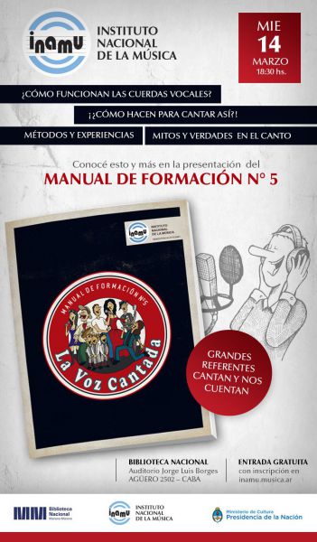 El miércoles 14 de marzo se hará efectiva la presentación del Manual de Formación N° 5 "La Voz Cantada" Instituto Nacional de la Música.