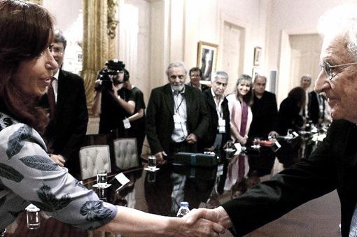 La presidenta Cristina Fernández de Kirchner dialogó esta noche en la Casa Rosada con intelectuales que participan del Foro por la Emancipación y la Igualdad. Se trata de pensadores de distintos países que expondrán en el encuentro que se inauguró hoy en el Teatro Nacional Cervantes de Buenos Aires.