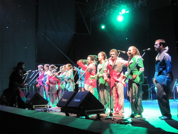 RG: En realidad cuando arrancamos éramos una cosa media rara. El que dirigía llevaba un acordeón, llevaba una especie de batería pero que no sacamos nunca el ritmo, ni marcha cañón, ni recortado, ningún ritmo así característico de la murga, sino que directamente tocábamos lo que nos parecía para acompañar lo que estábamos cantando y así lo íbamos llevando. Empezamos a escribir cosas porque lo que más nos interesaba era decir y cómo decir, hacer reír con lo que decíamos. Eso era lo que más nos interesaba del género y haciéndolo de una manera más directa, una crítica sobre lo que queríamos decir en lo político o lo que sea y después se empezó a utilizar más la ironía y buscar la risa del otro lado.