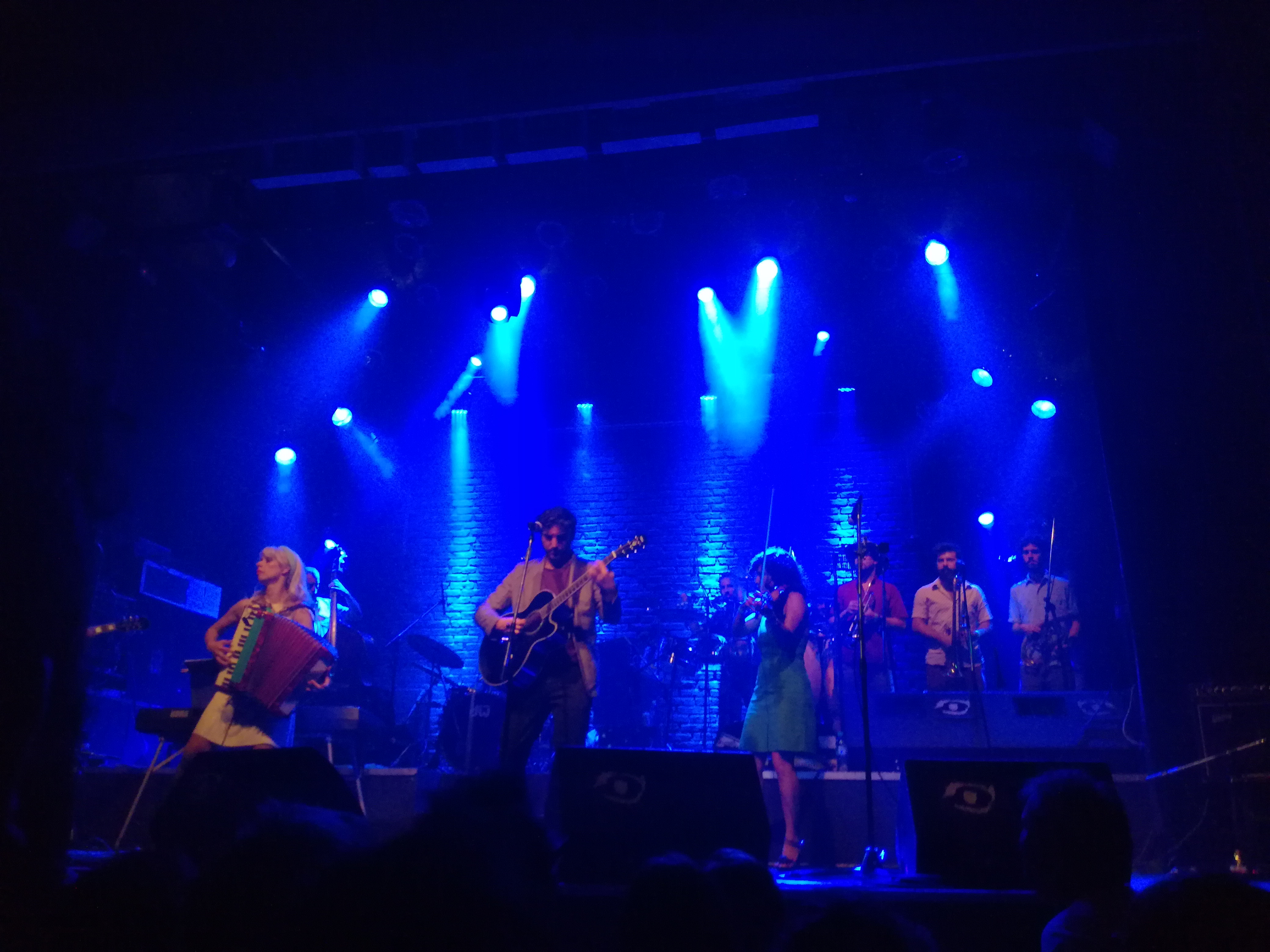 El show arrancó a toda orquesta con “Escarabajo” y siguió con “Canción de amor lejano”, donde MDMH mostró un sonido inoxidable y una energía que desbordó desde el escenario hasta el fondo de la sala. Pasando por temas de todos los discos, el primer gran momento llego cuando Flopa Lestani apareció en el escenario para cantar “Virgen de acero” que tuvo también la primera aparición en guitarra de Julio Sleiman, amigo y compañero de banda de Santiago. La siguieron como invitados Federico Falcón que cantó “El perfume” y el “Cucuza” Castiello para hacer “Invierno”.