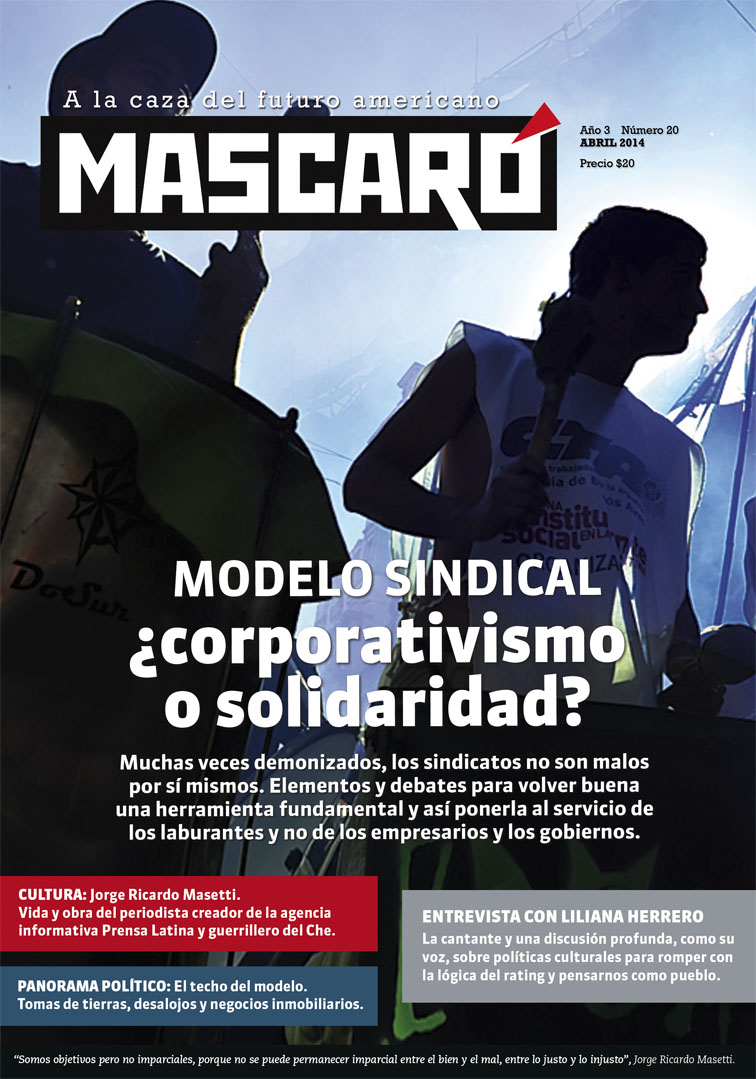 Agustín Santarelli: El primer número de la revista fue en mayo del 2012 y surge en el contexto en el surgen un montón no sólo de revistas, sino también de publicaciones, hasta blogs. Que tiene que ver con una polarización en términos políticos y mediáticos muy fuertes, en la que nosotros veíamos que no habían otras voces que tuvieran lugar, incluso las nuestras, pero no solo las nuestras sino la de un montón de sectores, espacios y colectivos que tenían cosas para decir y que no eran tan fácil de encorsetar. Que si le hacían el juego a la derecha o directamente eran un elemento del gobierno. Surge en ese contexto, a partir de distintas experiencias, algunas vinculadas, otras también al papel, pero que en definitiva terminan plasmándose en Mascaró, en mayo del 2012.