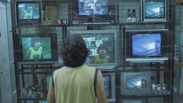 Es interesante el contrapunto entre el universo oscuro de avería de los pasillos del mercado y el glamour de las publicidades y las pantallas de la televisión. Como si hubiese un diálogo constante entre los dos mundos. Es justamente en la distancia entre esos dos mundos en donde la película encuentra su tono narrativo. En la distancia del mundo como ilusión de espectáculo y la realidad seca y dura de Víctor siendo perseguido y luchando por su vida. Lo interesante es que la brecha brutal entre la imagen de la sociedad del espectáculo y la realidad de los personajes del Mercado 4 nunca aniquilan la ternura. En la relación inocente y compleja de Liz y Víctor, la pareja protagonista, la ternura nunca deja de aflorar.
