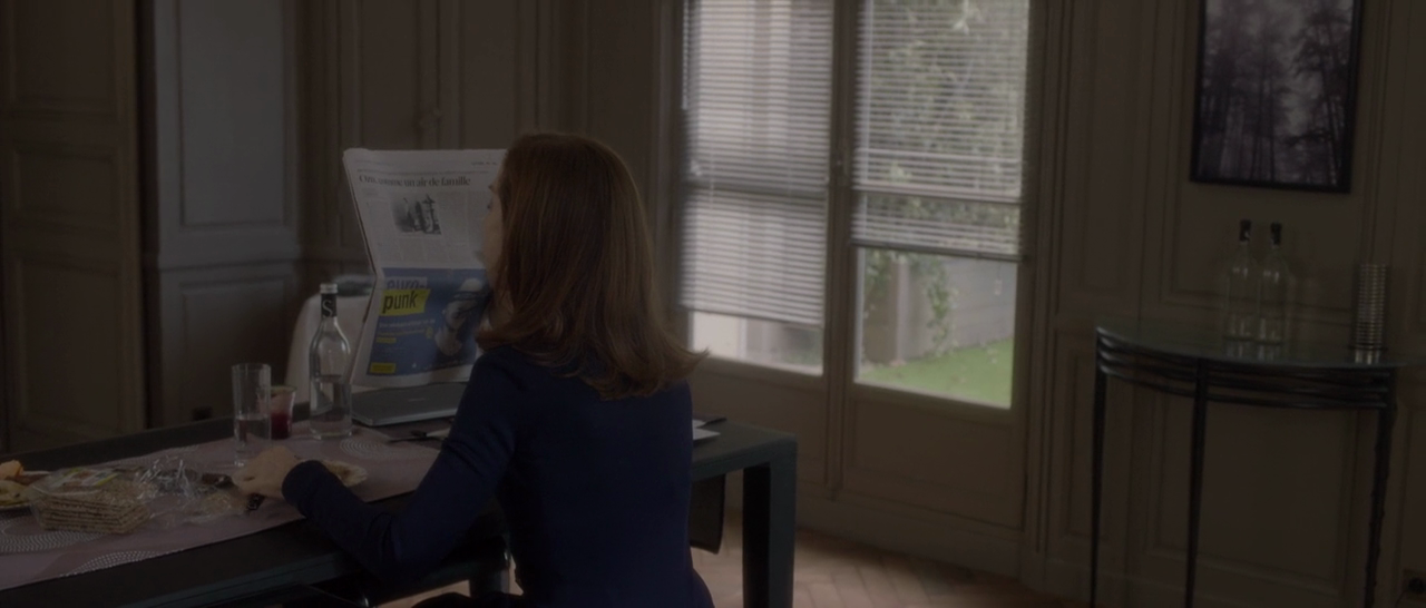 Cuando Michelle recuerda el ataque, la segunda de las tres veces que se nos presenta en pantalla, la vemos desayunando y leyendo un diario en el que claramente puede verse la palabra PUNK. Este, en apariencia, ínfimo detalle cobra un enorme sentido al descubrirse la identidad del atacante bastante más tarde, y que resulta ser su vecino, Patrick (Laurent Lafitte), un hombre joven, casado y católico practicante, como el padre de Michèle, hombre ya mayor que se encuentra cumpliendo condena tras haber masacrado a sus vecinos en un ataque de ira religiosa unos cuarenta años atrás. A todos sus vecinos incluyendo a las mascotas, únicas víctimas por las que la protagonista siente empatía. Tal vez la misma empatía que pueda llegar a sentir por Patrick, ese gato agazapado que no encuentra la paz.