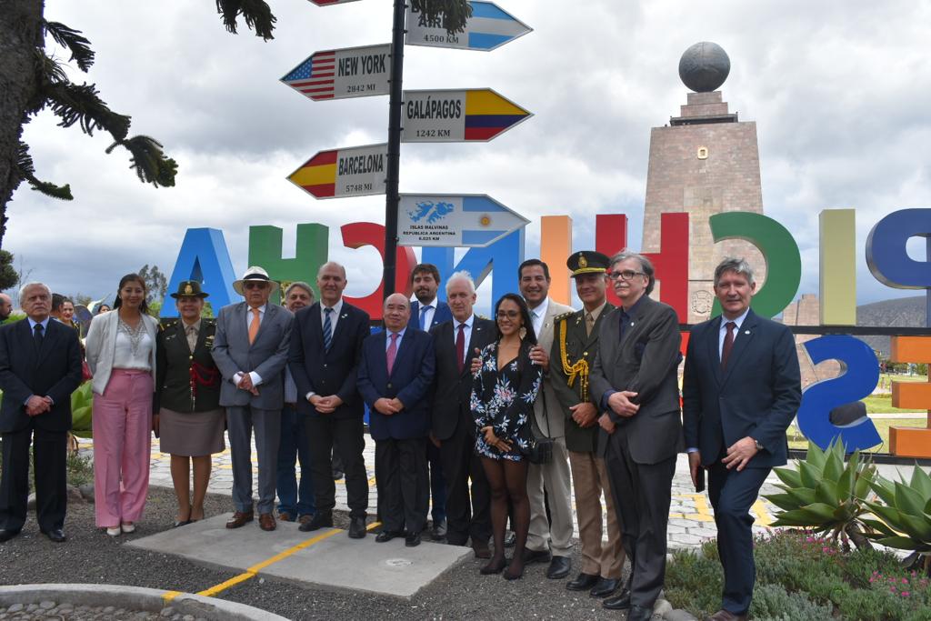 Visita del secretario Carmona a Ecuador: el hito entre Islas Malvinas y la Ciudad Mitad del Mundo-Paralelo Cero.