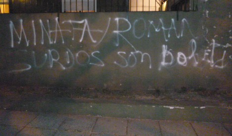 “Minatta / Román… surdos son boletas”, dice textualmente, la amenaza escrita en la pared.