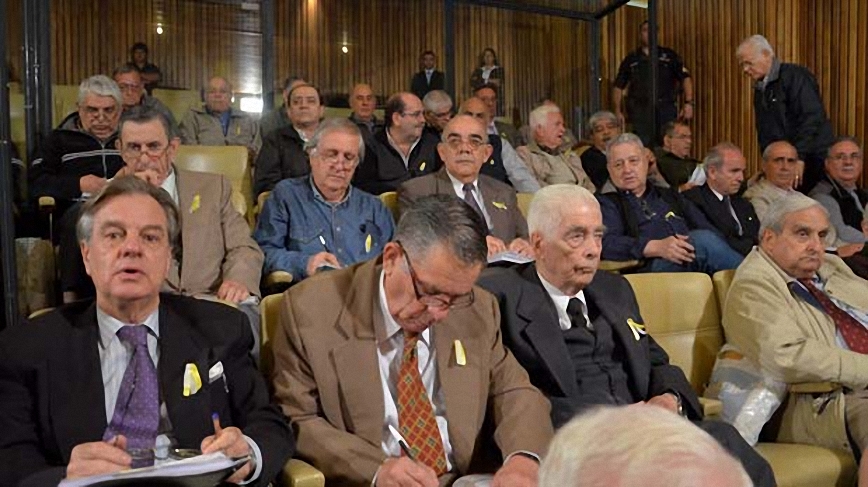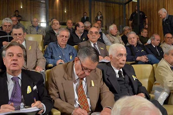 La mayoría de los cuarenta acusados, lucieron en las solapas de sus sacos las dos cintas cruzadas, en medio de cuestionamientos de algunos sectores sobre la actuación del ahora Sumo Pontífice durante la dictadura.