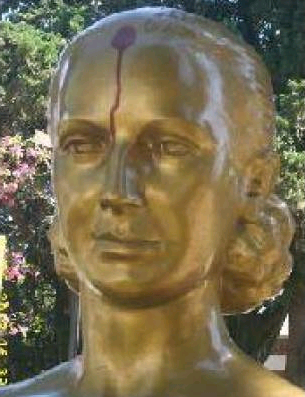 Hechos similares, se registraron para el aniversario del fallecimiento de Eva Perón, en la localidad santafesina de Totoras, donde el busto de la abanderada de los humildes, amaneció manchada en la frente, como pintura roja, como emulando una herida de bala.