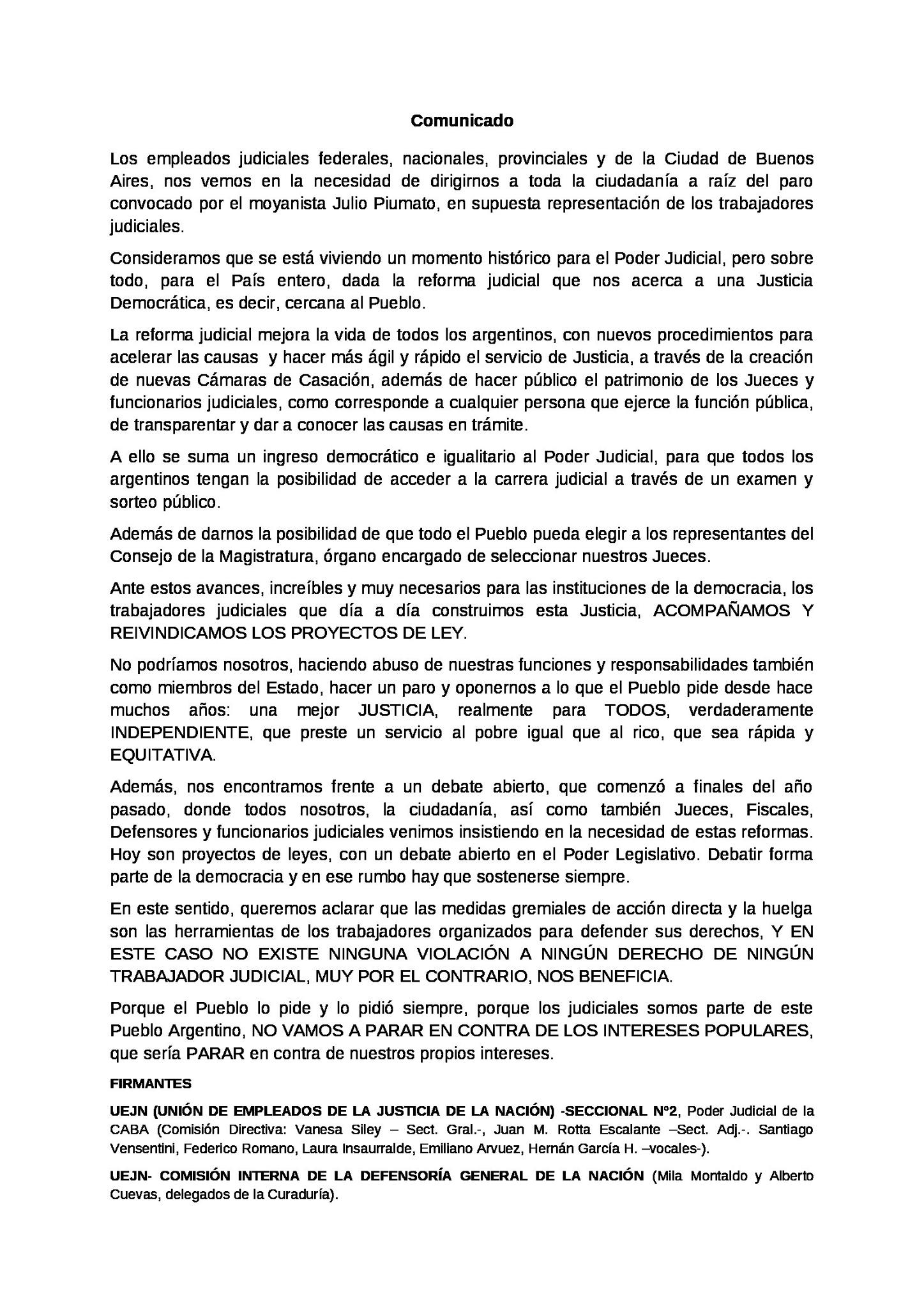 Imagen Imagen Más información Judiciales de todo el país rechazan el paro convocado por Piumato 14 Abril 2013 Imagen Más leídas Imagen El Proyecto Huemul, 75 años después: "Decir que fue fraude es delirante" Imagen Unión Industrial Argentina: más de la mitad de las industrias tuvieron caída de ventas y producción desde 2024 Imagen Endeudamiento de las familias: se cuadriplicó la morosidad en un año Más información Imagen Barcelona vs Newcastle United: previa de la vuelta de los octavos de final de la Champions League Imagen Por qué el endurecimiento de sanciones por riesgo está cambiando el comportamiento de los trenes de sprint en el ciclismo Imagen Ventajas de la app de Stake para jugadores argentinos Imagen Sesiones cortas cambian el juego móvil Imagen Imagen