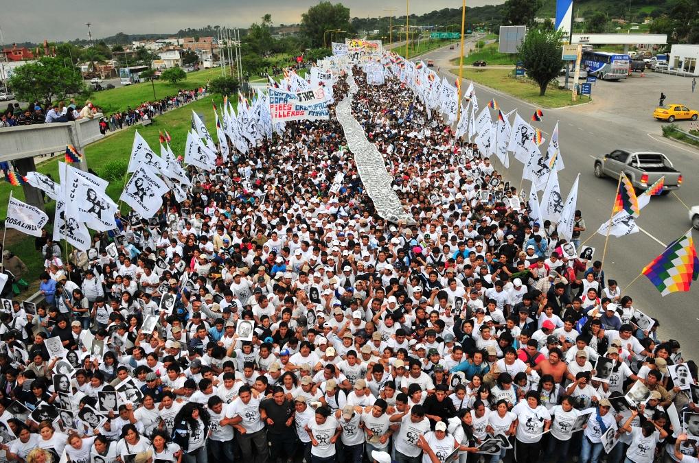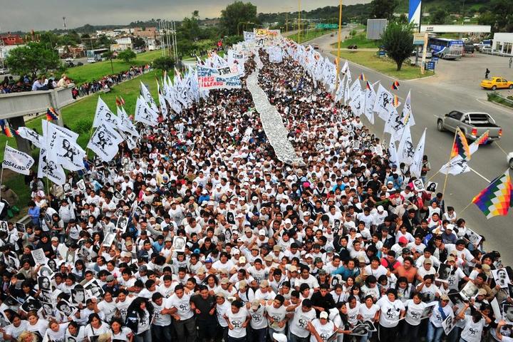 Más de 50 mil personas se movilizaron 7 kilómetros, desde el Parque Independencia hasta la Plaza Belgrano, frente a la Casa de Gobierno de la Provincia, junto a Madres, Familiares, HIJOS y Ex Presos, entre otras agrupaciones de derechos humanos, y la Red de Organizaciones Sociales para exigir que se inicien los juicios por delitos cometidos en la dictadura en Jujuy. Además reclamaron la aceleración de los procesos pendientes y la conformación del Tribunal Oral Federal. “Vamos a continuar acompañando a las organizaciones en todo acto y reclamo hasta tanto se haga justicia en la provincia y los responsables por los delitos de lesa humanidad vayan a la cárcel común”, expresó en el acto central Milagro Sala, referente de la Tupac Amaru.