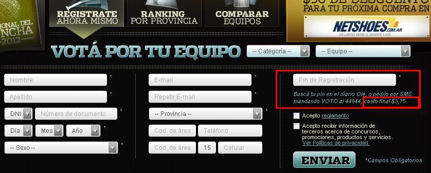 Entonces, el propio Olé lanzó ese registro mediante el sistema esquema: los hinchas deben mandar un mensaje de texto que les permite registrarse y votar por el club con el que simpatizan. Así de fácil. Y de rentable para el diario. Porque cada mensaje sale 3,75 pesos. Hasta el momento ya votaron 42 mil personas, que representan alrededor de 160 mil pesos.