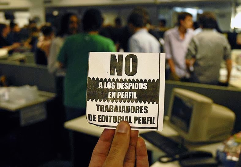 En Editorial Perfil (del empresario Jorge Fontevecchia), hace unos pocos días, la Asamblea de Trabajadores convocó a un paro por el despido de 12 trabajadores. La empresa tiene un largo historial de ajuste sobre sus empleados.