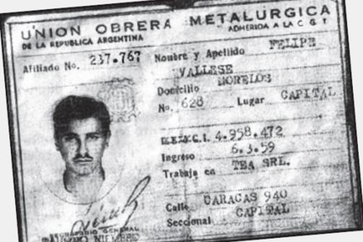 APU: Lo interesante de la trayectoria de Felipe Vallese además de su militancia juvenil, él tenía apenas 22 años, es que tenía experiencia de militancia gremial. De hecho hoy uno de los salones de la CGT se llama Felipe Vallese, es como una figura reivindicada por muchos espacios de la militancia popular.