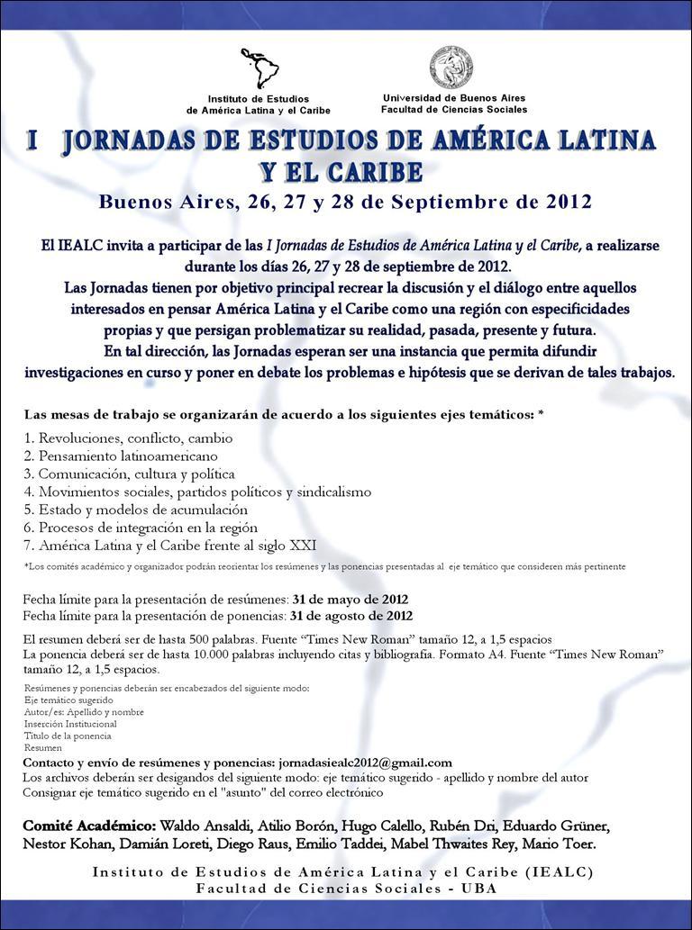 Imagen Más información UBA: I Jornadas de Estudio de América Latina y el Caribe 19 Abril 2012 Imagen Más leídas Imagen Pedro Peretti: “La quita de retenciones jode al pueblo porque aumenta el precio de los alimentos" Imagen José Cornejo: “La discusión es cómo volvemos a tener un peronismo de masas” Imagen Gabriela Pepe: “El mercado evidentemente no le cree más al gobierno de Javier Milei” Más información Imagen Poker Online, un terreno cambiante y competitivo Imagen Sugar Rush 1000: un juego argentino que fascina a muchos Imagen Comparación entre leyendas: Messi vs Cristiano Ronaldo – análisis de sus fortalezas y debilidades Imagen Betsson mejor casino en Córdoba: la plataforma que transformó el entretenimiento digital en la provincia Imagen Imagen