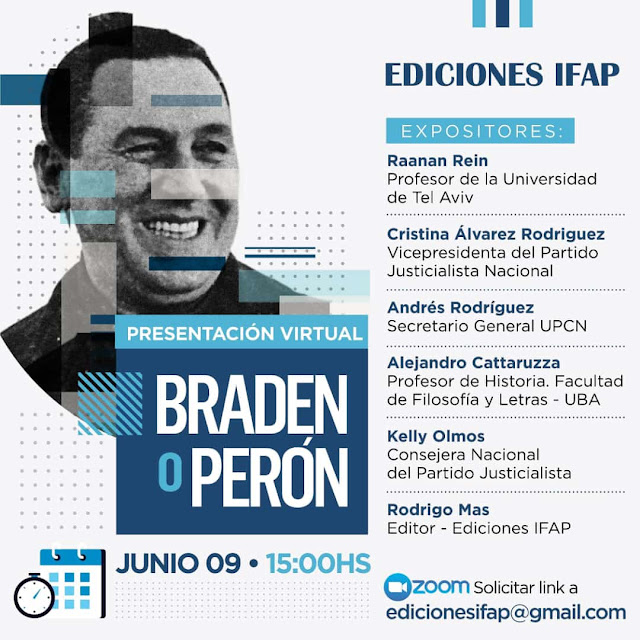 Ediciones IFAP, la editorial creada por el Instituto de Formación y Actualización Política, que tiene entre sus directores a los dirigentes peronistas Kelly Olmos y Javier Mouriño, presenta el miércoles 9 de junio a las 15 hs. el lanzamiento del libro “Braden o Perón. El Libro Azul y el Libro Azul y Blanco. Los documentos que marcaron la campaña electoral más importante de la historia argentina”.