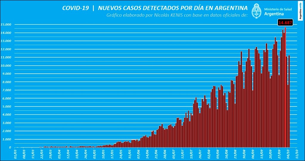 El Ministerio de Salud de la Nación confirmó en la noche de este lunes 11.242 nuevos diagnósticos positivos por el virus SARS CoV-2, causante de COVID-19.