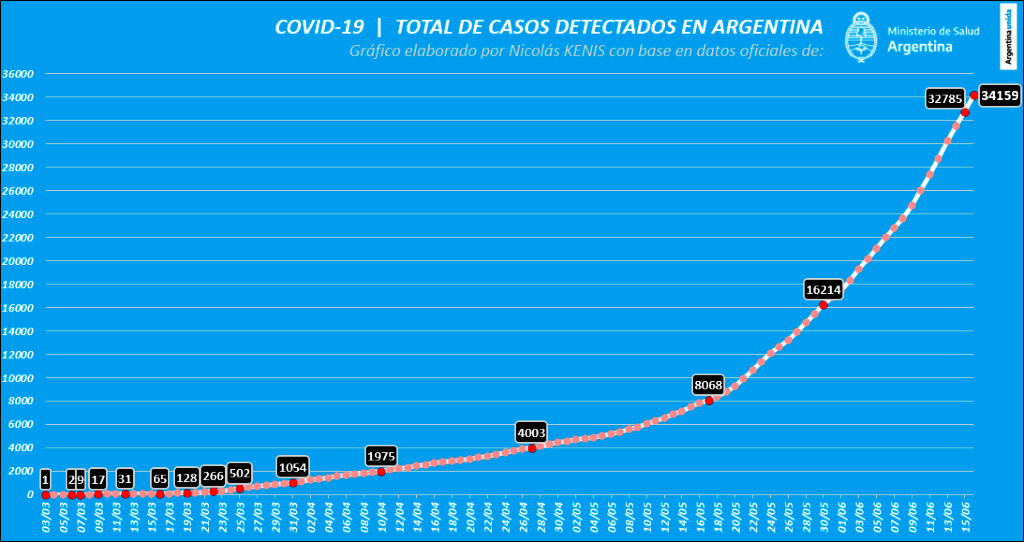 El Ministerio de Salud de la Nación confirmó en la noche de este martes 16 que 1.374 personas tuvieron un resultado positivo en la prueba sobre de la presencia del virus SARS CoV-2, causante de COVID-19. El dato se oficializó con la publicación del informe vespertino de la cartera sanitaria, que puede consultarse en este enlace y con el cual diariamente actualiza la situacional nacional en relación a la pandemia por el nuevo coronavirus.