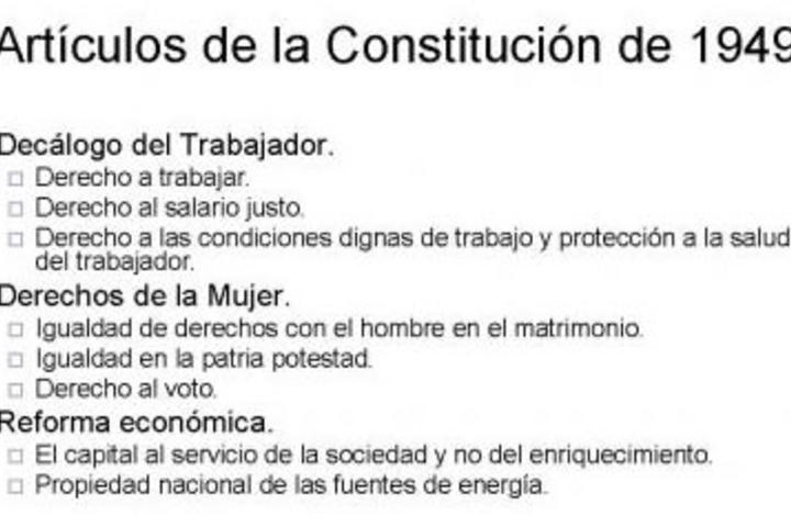 La Constitución de 1949 y a diferencia de la de 1819 o la de 1826, era la institucionalización de un proceso social, político, económico y cultural previo y no su inverso y es a partir de la realidad efectiva de la norma, que no hizo falta asesinar argentinos para imponerla. Los derechos del trabajador, de la familia, de la ancianidad y de la educación y la cultura introducidos en el Capítulo III, eran una realidad papable en cientos de miles de casas, de escuelas, de hospitales, de centros deportivos o de universidades construidas en el período. La función social de la propiedad privada (artículo 38) y el mandato de que el capital debía estar al servicio de la economía (artículo 39), tenían una clara vigencia, expresable y por ejemplo, en la planificación colectiva del desarrollo nacional en los Planes Quinquenales o en la participación concreta en la riqueza por parte de la clase obrera. La mención al monopolio que debía ejercer el Estado nacional sobre el comercio exterior, sobre los servicios o los recursos naturales (artículo 40) eran el marco institucional para el funcionamiento de los ya existentes IAPI, YPF, IAME, Fabricaciones Militares o para los ferrocarriles nacionalizados. No se trató de copiar un texto de Europa para que la realidad se ajuste a él, sino que y por el contrario, se buscó institucionalizar el avance de las organizaciones libres del pueblo y la nación, en la construcción de sus decisiones. La vigencia y la actualidad del texto, se hicieron sentir y por ejemplo, en la resistencia de las organizaciones libres del pueblo frente al liberalismo neocolonial inaugurado en el año 1955, que la derogó y que intentó revertir el modelo de país para regresar a la colonia pastoril. La fuerte defensa de sus derechos ejercida por los trabajadores frente a la revancha de la oligarquía, fueron una muestra cabal de la existencia y la supervivencia de muchos de los principios del texto de 1949.