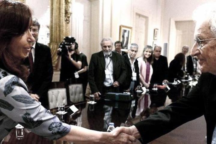 En la audiencia, que se desarrolló en el Salón Eva Perón, la mandataria sostuvo que "nos llena de orgullo y honor haber auspiciado este encuentro en estos momentos de crisis, porque más allá de las crisis económicas, más allá de este mundo tan desigual, de brechas sociales que se profundizan cada vez más, creo que el principal problema de la época es no poder tener una formulación teórica que encuadre el momento que estamos viviendo".