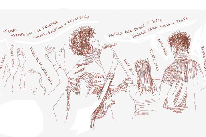 Las fechas se me confunden pero sospecho que el recital de la calle México fue tiempo después. Estábamos los de siempre: Tuta, Pini, Jorge, pero esta vez se había sumado Esteban. Raro. El bar se llamaba Bolivia y no cabían más de cincuenta personas. En la calle, antes de entrar, hubo una pelea. Uno era flaquito y vestía de negro y de mochila; el otro era más grandote, un punki. Sufrí por el flaquito, pero se la bancó.
