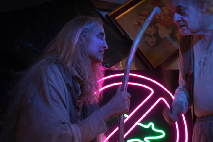 Las Ratas, “tragedia sonora para seis actores y operación de sonido en tiempo real”, de Vinicius Soares y Guillermo Vega Fischer, es una propuesta que nos entierra en un clima sórdido de tensión pos-apocalíptica. Con recursos de sonido ingeniosos, entre lo digital y lo artesanal, llegamos pronto a un ambiente de caótica locura consecuencia de una humanidad maltratada y devaluada por la competencia salvaje del hambre y el miedo a lo que sucede fuera de su grupo. La combinación de variadas técnicas sonoras rompe a cada rato las dinámicas para crear momentos muy marcados, por inmersivos e hiperbólicos.