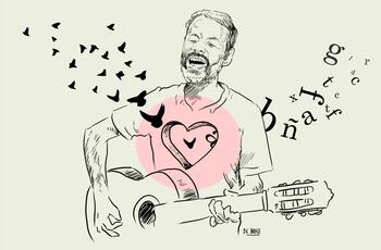 Ese lugar de hibridez, es para mi, un ejercicio de libertad. Ven a un señor con barba y guitarra y, dicen ahí viene el cantautor: yo siempre digo que mi apariencia de cantautor es una trampa fatal. Nada me interesa menos que el cantautor, está barba hago así y me la saco.