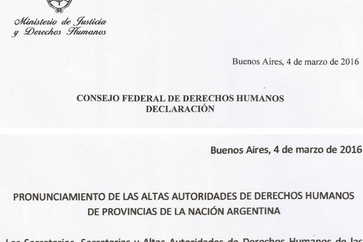 Imagen Imagen Imagen DDHH Anexo documental: declaraciones en pugna 18 Marzo 2016 Río Negro Chaco Entre Ríos La Rioja La Pampa Santa Cruz Neuquén Tucumán Santiago del Estero Misiones Catamarca Santa Fe Consejo Federal de Derechos Humanos Imagen Más leídas Imagen Daniel Rosato: “La recesión empieza a ser muy dura” Imagen La trampa logística, o de cómo se subsidia a la Capital Federal desde los extremos de la Argentina Imagen Sale Bullrich, entra Monteoliva: ¿Quién conduce? DDHH Imagen Agenda de derechos humanos en diciembre: encuentro federal, torneo solidario y movilización Imagen Reacciones ante las afirmaciones de Alberto Baños ante la ONU Imagen Esma IX: comenzó el juicio contra uno de los acusados por el secuestro de Rodolfo Walsh Imagen Abuelas de Plaza de Mayo: lanzan la campaña "Soy de Abuelas" para sumar donantes Imagen Imagen Relacionadas Imagen Masacre del Alto Bariloche: catorce años de una herida que no cierra Imagen Crónica de un viaje a Lewislandia (Primera parte) Imagen El Patagónico: un tren llamado deseo Imagen El final de una fiesta, el principio de una lucha