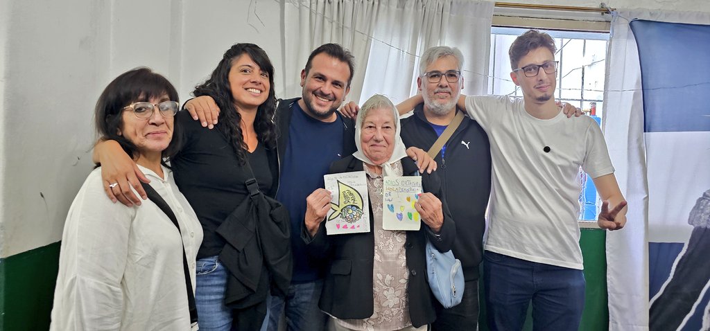 La charla fue organizada por Peronismo Patriótico y contó con la presencia de Carmen Arias, presidenta de Madres de Plaza de Mayo, Lauro Grande, vicepresidente del Partido Justicialista de San Martín, y de Demetrio Iramain, autor de "Hebe y la fábrica de sombreros" y director de ¡Ni un paso atrás!.