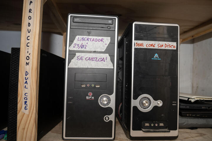 A través de donaciones de particulares reciben computadoras y componentes con los cuales, luego de reacondicionarlos y probar su correcto funcionamiento, arman computadoras completas listas para ser utilizadas por quién las necesite. Uno de los modelos, “Patria”, cuesta una décima parte de un Salario Mínimo, pero también tienen para ofrecer el “Malvinas” o el “Martín Miguel de Güemes”, según el perfil de uso de la persona que lo solicite. Con la venta de estos modelos se bancan económicamente pero, en definitiva, el precio es simbólico. Cuando llega alguien del barrio precisando un equipo, lo primero es invitarlo a conocer el taller donde los anfitriones convidan un guiso mientras conversan sobre cómo trabajan y se organizan. El trueque también es muy bien recibido: una vez un herrero se llevó satisfecho su computadora a cambio de un trabajo de herrería para el taller.