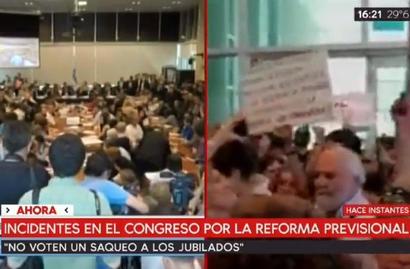 Un grupo de jubilados protestó con gritos e insultos contra la reforma para ajustar el sistema previsional, en el marco del plenario de las...