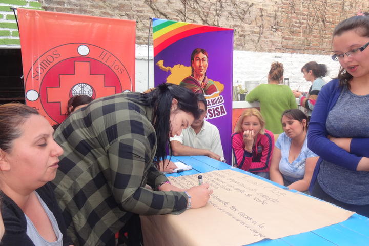 Bartolina Sisa fue una heroína aymara, una mujer líder del siglo XVII que se alzó contra el maltrato y la dominación española y significa mucho para este grupo de mujeres, que trabajan en el centro integral de la mujer de Quilmes. Son mujeres protagonistas y actrices de la transformación de su realidad y de sus barrios generando posibilidades desde la articulación, la gestión y la solidaridad.
