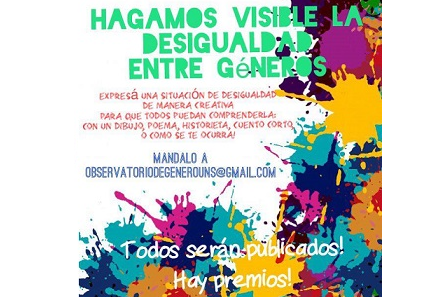 Hasta las 23 horas del próximo jueves 30 de noviembre, el Observatorio de Género y Diversidad Sexual recientemente creado en la Universidad Nacional del Sur (UNS) de Bahía Blanca recibirá obras participantes de su primer Concurso “Hagamos visible la desigualdad entre géneros”.