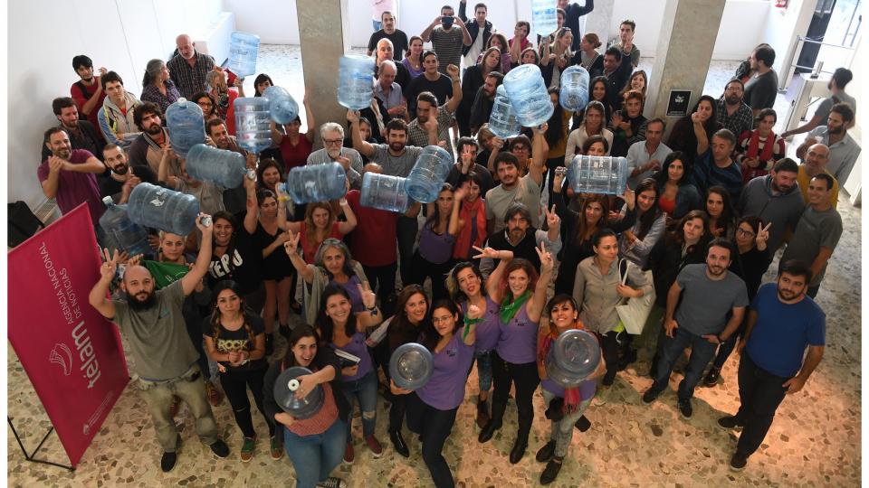 Aquí estamos, marchando, en asamblea permanente, con tensiones, discusiones, armando redes y haciendo acciones comunicacionales, pero finalmente, todxs, esperando el telegrama.