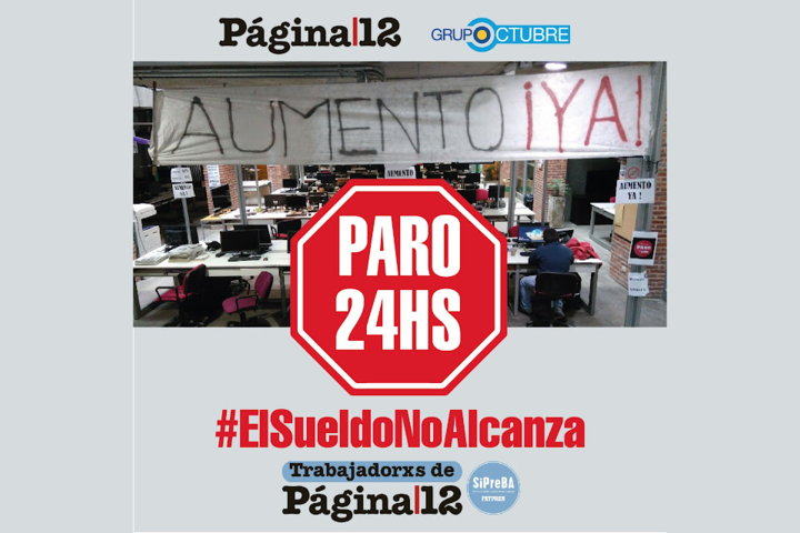 “Desde los primeros meses de 2016, cuando el Grupo Octubre conducido por Víctor Santa María compró Página/12, nuestros sueldos sufrieron una brutal depreciación”, comienza relatando el comunicado. “El castigo al bolsillo de los trabajadores que caracterizó al gobierno de Mauricio Macri se vio agravado en nuestro gremio por las sucesivas paritarias a la baja que Clarín, La Nación, Perfil y demás miembros de AEDBA le impusieron al sello de goma que conserva la personería gremial de nuestra actividad”.