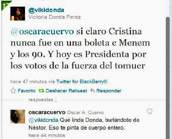 Imagen Oposición Donda, polémica: "Cristina es presidenta por la fuerza del to-muer" 15 Diciembre 2011 Imagen Más leídas Imagen Moreno, sobre su condena: "Siempre dijimos que se entra y se sale de la cárcel cantando la Marcha Peronista" Imagen Fabián Cagliardi: "La gente está buscando otro tipo de políticos, que pueda conducir de una forma distinta” Imagen José Cornejo: “Hay que debatir qué proyecto de peronismo queremos en el marco del Partido Justicialista” Oposición Ahora Massa se pelea con Clarín: "Que publiquen lo que quieran, voy a seguir" "Con el acuerdo perdieron Morales, Cobos, Daniel Vila y, sobre todo, Massa" Imagen "No llego a ver cuál es el gran incentivo para la UCR o si es lo único que le queda" Imagen "No llego a ver cuál es el gran incentivo para la UCR o si es lo único que le queda" Imagen Imagen