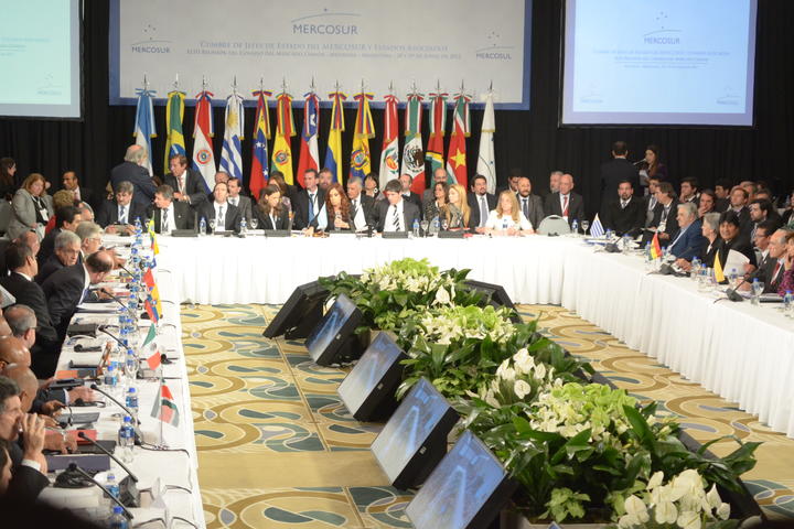 Los hechos que son de público conocimiento ocurridos en la hermana República del Paraguay, a la cual diferentes mandatarios nos hemos referido caracterizándolos como una interrupción del orden constitucional democrático y violatorios, estoy hablando en este caso en nombre de la República Argentina, de la cláusula democrática constitutiva del MERCOSUR, nos han planteado un escenario para esta Cumbre totalmente diferente.