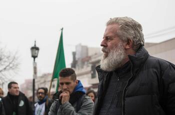 “En esta pelea debemos incorporar a una parte del empresariado que no va pelear igual que nosotros. Pero que antes las empresas que se funden, si vos no tenés relaciones fuertes con el resto de la sociedad, te quedas solo y te morís. Compañeros que trabajan todo el día en la pyme, pierden su único proyecto en la cabeza y se mueren. Tengo esa experiencia con mi viejo que tenía una fábrica metalúrgica donde fabricábamos archivos y muebles de chapa pero que se fundió con los milicos, que importaban de Brasil, después con la hiper de Alfonsín y la última en los noventa que no se pudo levantar más y ahí pasé a vendedor ambulante”, explicó Esteban “Gringo” Castro que llevaba puesto un Rosario papal al cuello y una remera negra con la figura del santo de los estigmas, San Pío de Pietrelchina.