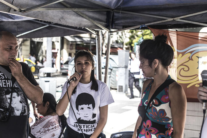 Luego agregó: "Soy la mamá de Jonathan Lezcano, “Kiki” era el apodo que le había puesto su abuelo. Tenía 16 años, el 8 de julio de 2009 desapareció, tenían tres meses desaparecido, y lo encontramos enterrado en la Chacarita. Perdón pero hoy es un día muy triste para mí también, tengo un sobrino detenido, le armaron una causa en González Catan. Me angustia mucho también eso, de saber que por la condición de ser negrito y usar boina le hicieron una causa. Lo encontraron tirado en la chacharita como NN. Me cansé de golpear las puertas de la justicia pidiéndoles que me ayuden a encontrar a su hijo. Ellos me decían 'pero que le hizo usted señora, porque se fue el chico de 17 años'. Me decían 'capaz está con alguien, con una noviecita, o por ahí se metió en problemas con los tranzas y está fugitivo por ahí señora, tenga tranquilidad'. Todo esto me decían los señores que están acá, en el Poder Judicial. Y yo les pedía simplemente que me ayuden a buscarlo, porque no era así, porque mi hijo nunca se había ido de mi casa, era incapaz. Y a mí nadie me creía porque yo era la loca. Todo eso pasó. Por eso a mí me llega mucho lo de Nehuen, lo de Roxana, lo de los pibes y pibas que están acá apoyando, porque sin el acompañamiento de unos pibes, de unas píbas, de los familiares, de acá de la radio abierta, de aquellos que vienen, nosotros no podemos llegar a ningún lado.”