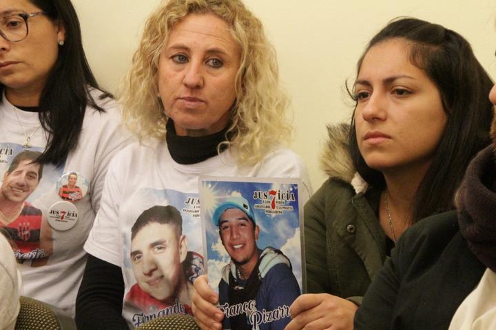 Corremos a la sala, entramos. Aún no había ingresado Alberto Donza. El aire se cortaba con la mano y un silencio enorme invadía todo el espacio. Ahí estaban las familias de las víctimas: Sergio Filiberto, Franco Pizarro, Fernando Latorre, Federico Perrota, Noni Cabrera, Alan Cordoba y Jhon Claros. Sostenían carteles con las caras de sus hijos, compañeros, hermanos. También estaban los/as abogados/as de las querellas, entre ellas, la Comisión Provincial por la Memoria (CPM). Es 13 de junio, se vota la despenalización y legalización del aborto en el Congreso, y los pañuelos verdes también están en esta sala, en el cuello de la abogada de la CPM, en la muñeca de Ludmila, en las mochilas.